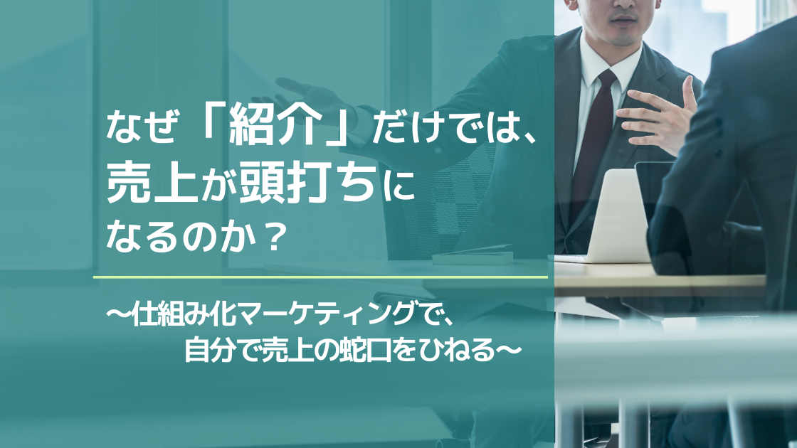 なぜ「紹介」だけでは、売上が頭打ちになるのか? 〜仕組み化マーケティングで、自分で売上の蛇口をひねる〜