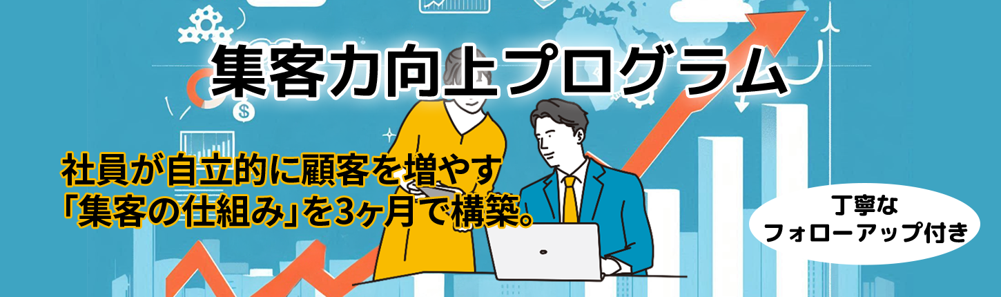 本プログラムは、貴社に眠る技術とノウハウを活かした集客戦略を構築し、最短で新規顧客が獲得できる実践ノウハウを提供します。